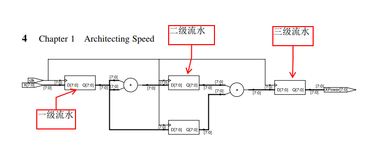 上面的优化也说明了流水线的特点。整个结构像一个数据加工的流水线,每一级的D触发器都是节点。两个节点之间的逻辑是流水线上的加工,因此当前数据完成传输至下一级。同时,上一级的数据也传输至这一级,从而实现每一个周期都有运算结果输出,从而增加了系统数据吞吐量。