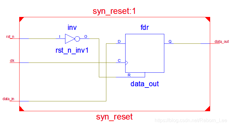 下面调用上面的异步复位,同步释放处理后的复位信号,并给出RTL电路图: