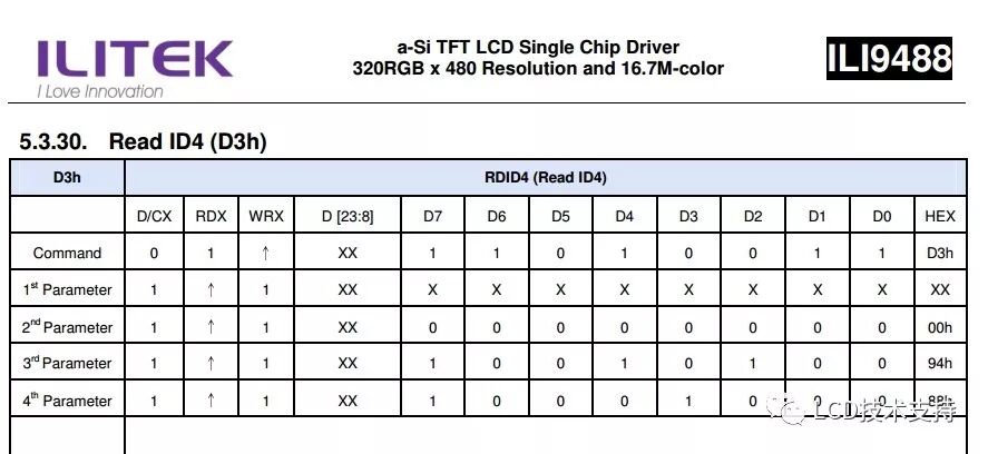 三、ILI9481读BF寄存器,可以读到ID,第四,第五个字节为需要的ID