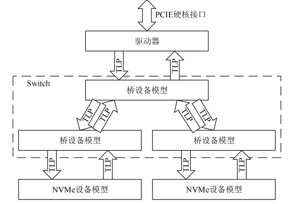 带有交换设备的最小 NVMe 子系统模型如图 2 所示。在构建测试平台的过程中, 可以根据需求在最小存储子系统模型的基础上添加组件来构建合适的 PCIe 链路拓扑结构。