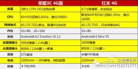 【红米移动4G版MTK方案 与荣耀拼抢到底】