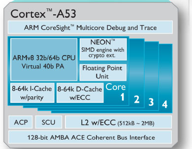 Cortex-A53是基于ARMv8架构的Cortex-A50处理器系列产品之一。ARMv8是ARM的第一个四核64位处理器架构;基于此架构的处理器产品,ARM将其命名为“Cortex-A50”系列; Cortex-A50处理器系列产品率先推出Cortex-A53和Cortex-A57处理器。Altera为什么选用Cortex-A53而不是Cortex-A57处理器呢?