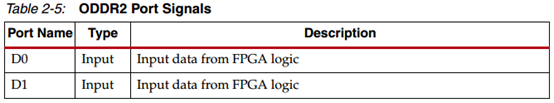 与ODDR2类似的是IDDR2,前者将差分转成单端,后者将单端转成差分。ODDR2的接口,如下所示: