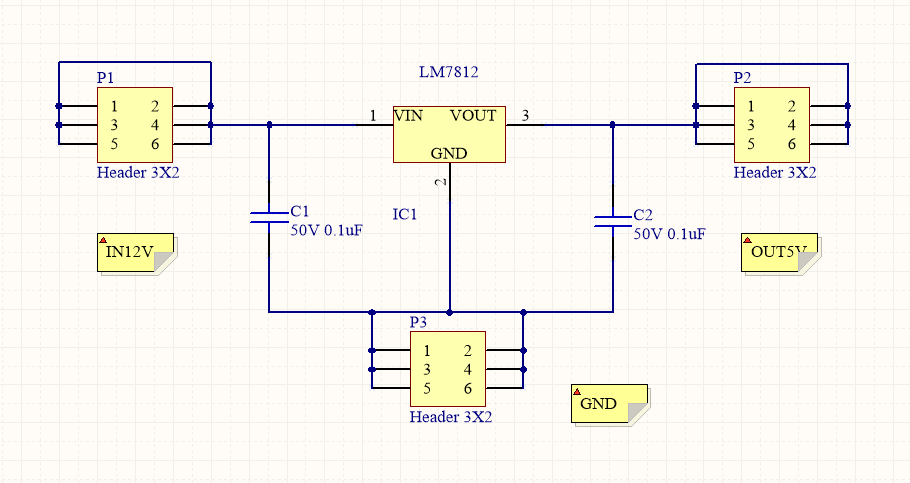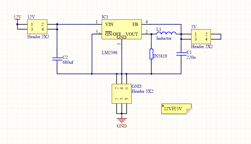 最近做电设需要用到12V转5V的电源模块,之前用一个7805输入12直接变成5V简单粗暴,如下图所示