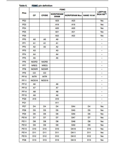 The FSMC is embedded in the STM32F103xC, STM32F103xD and STM32F103xE