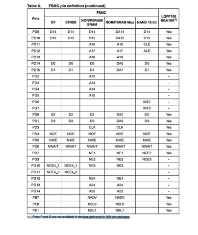 对于LQFP100和BGA100封装,只有FSMC BANK1和Bank2。 BANK1只能