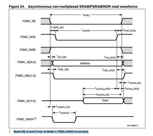 STM32F103xC,STM32F103xD和STM32F103xE中嵌入了FSMC