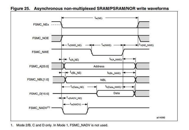 支持复用的NOR/ PSRAM内存使用NE1芯片选择。 BANK2只能支持16 -