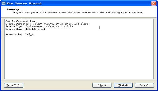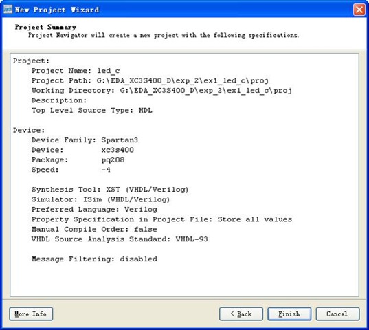 接下来,需要创建一个Verilog源码文件,可以用任何的文本编辑器来进行输入,输入完毕后保存为led_c.v,位置放在上面创建的工程路径下。