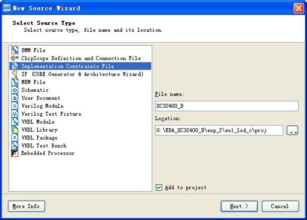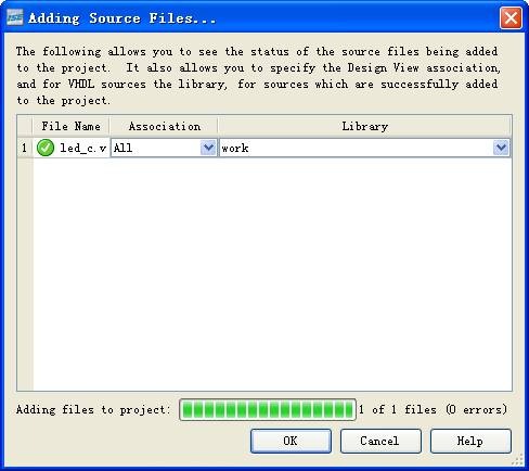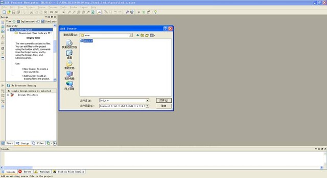 8、 选择前面编好的led_c.v文件,如下图所示: