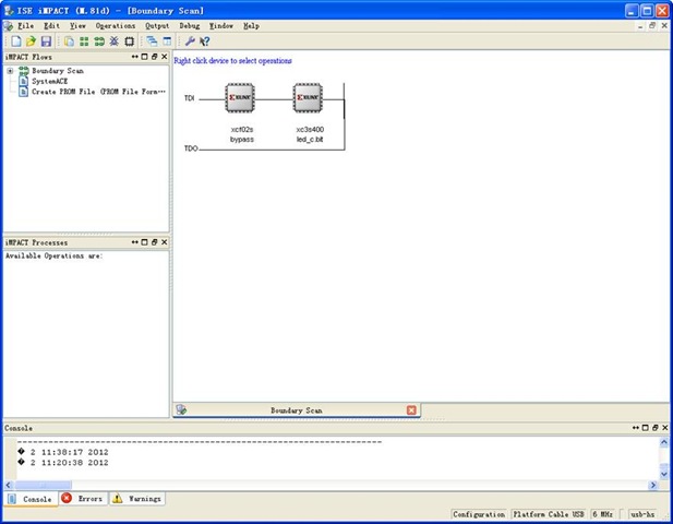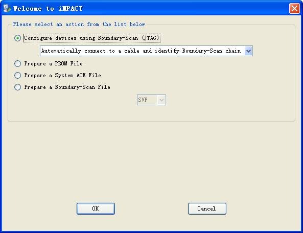 16、编译完成后弹出ISE IMPACT 下载窗口,如下图所示。