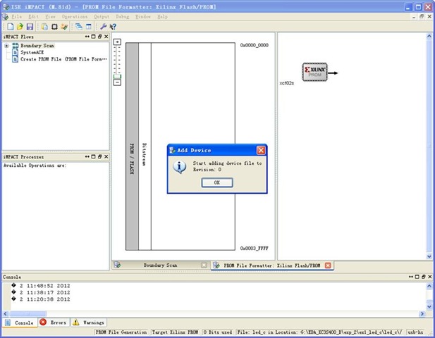 接下来我们要将 ledwater.bit 转换为 mcs 格式的配置文件写入到 xcf02s 里面。