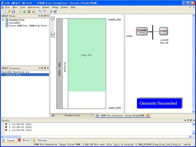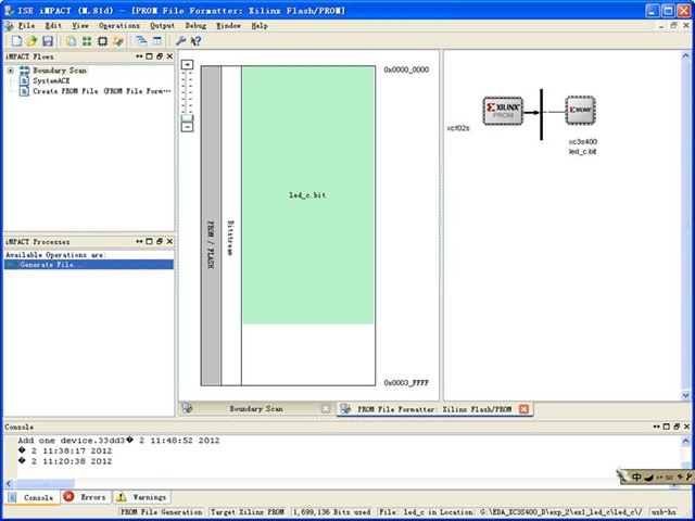 31、将ISE 左侧中部可以看到有项clip_image091,双击该项即可生产PROM 配置文件,如下图所示: