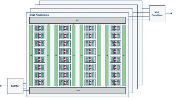 图1. 基于GaN的固态功率放大器能够在X波段提供8kW输出功率
