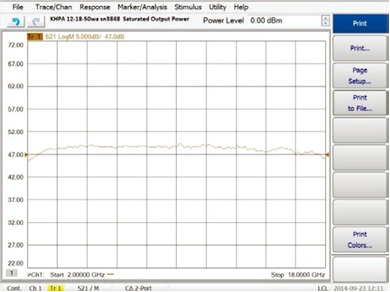图8. 2 GHz至18 GHz固态功率放大器,在全频率范围产生100 W CW输出功率