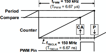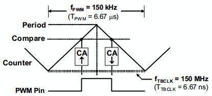 TBPRD= fTBCLK / fPWM – 1 =150MHz / 150kHz – 1 = 999