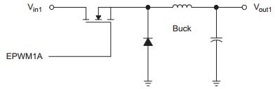 下面用一个Buck变换器的小例子说明HRPWM的使用;Buck变换器的示意图为: