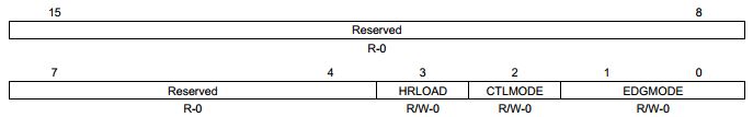 HRPWM的寄存器并不多,所以除了SFO库的使用需要花点时间了解以外,寄存器的配置是比较容易的。首先看它的配置寄存器HRCNFG。HRCNFG是EALLOW保护的,它的各个位的含义是:
