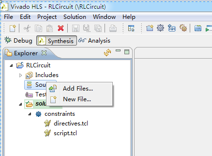 进入Vivado HLS主界面之后,在工程浏览器的Source上点击右键,选择新建源程序,如图3所示。