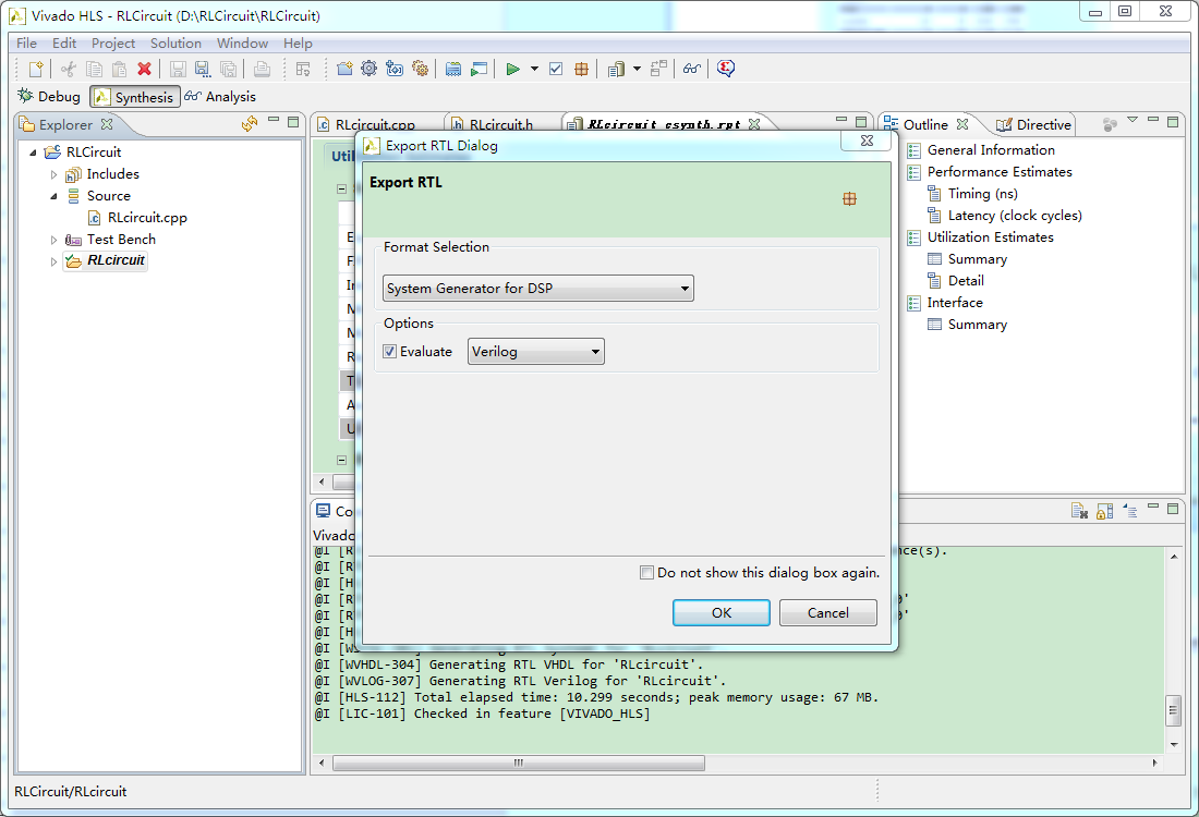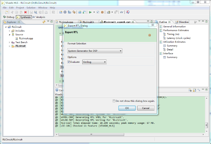 然后我们便可以将综合之后的代码生成RTL了。在图5中对应的右键菜单上选择Export RTL,并选择导出到System Generator如图6所示。