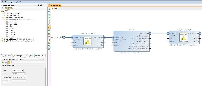 然后在图3 包含的fft的中,把我们自定义的两个IP也加入到模块文件中。在完成了以上3个IP的例化之后,把它们的AXI4数据端相连,如图5所示。