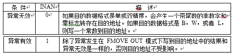 | FMOVE OUT(B、W 或者 L) | 整数溢出,源数据是非数字或者±∞ |