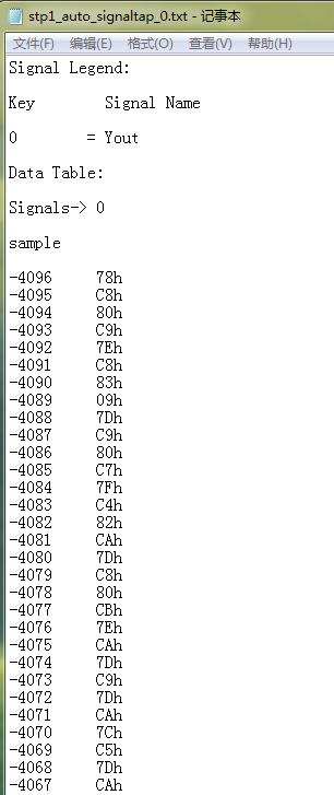 SignalTap中其实有很多好用的功能,其中一个就是波形导出功能。具体操作如下,先选择好深度,将信号抓到,在信号附近鼠标右击,会有一个选项create signaltap II list file,点击保存后,在工程目录下会自动产生一个.txt文件,里面便是你刚抓的波形,只是全部以数字的形式出现罢了。如图所示: