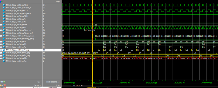 这种情况下,如果仅仅在tb中模拟几个输入数据来测试代码,很难看到效果,毕竟一行信号就有七百多个像素之多,而且自己模拟的数据也不具有真实性,即使是对BT656的时序烂熟于心,也难免会犯错。