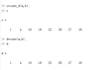 于是在“xn_fill = {zeros(1,k-1),xn,zeros(1,k-1)};”后面再加一句“xn_fill = cell2mat(xn_fill);”这回没有报错,并成功得出卷积结果: