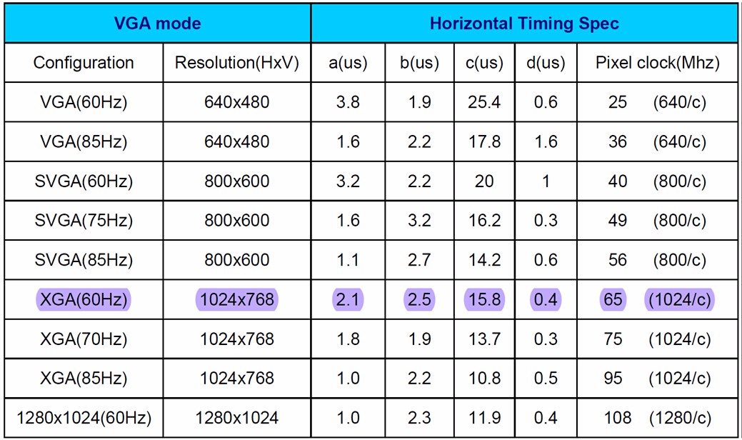 不同分辨率、帧频对应不同的像素时钟,如分辨率为640×480,帧频为60Hz,则像素时钟为25MHz