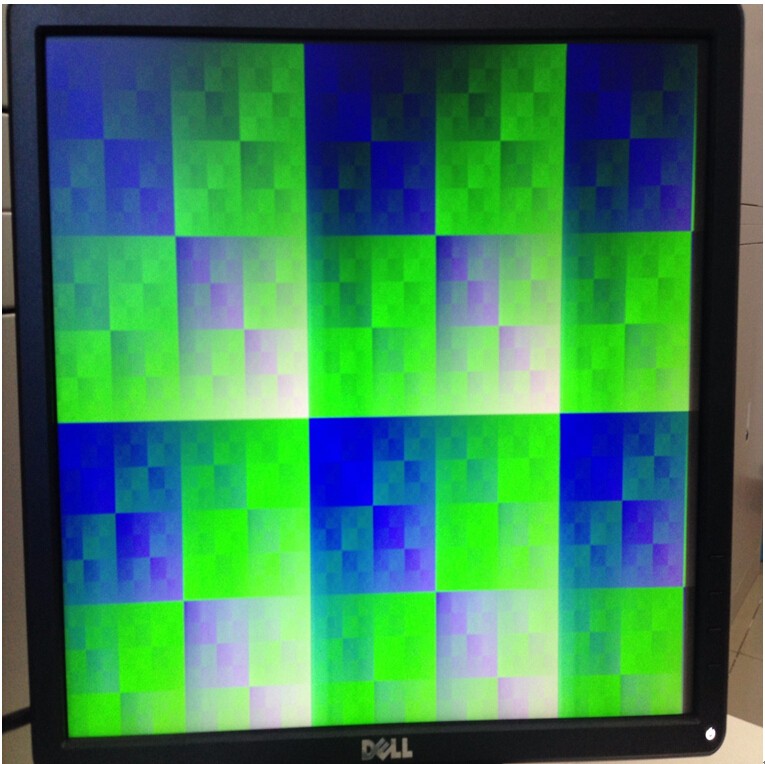 由于手头没有相应探测器,所以在FPGA内部模拟产生一幅图像,然后将其输出,VGA显示图像如下图所示。