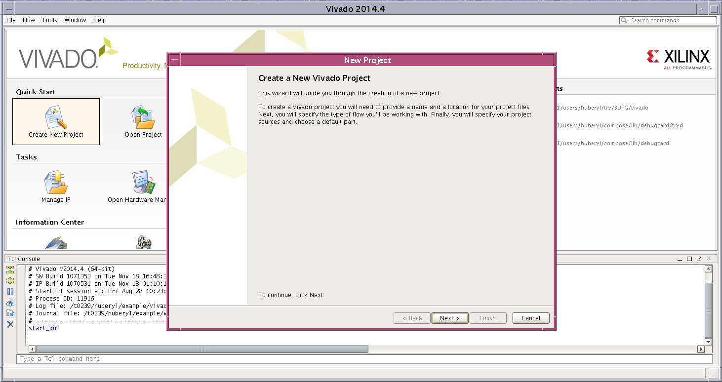 Create Project有GUI和tcl两种模式,我们先介绍GUI模式。对于新手推荐使用GUI,当比较熟悉的时候建议尝试tcl,会极大地提高工作效率。