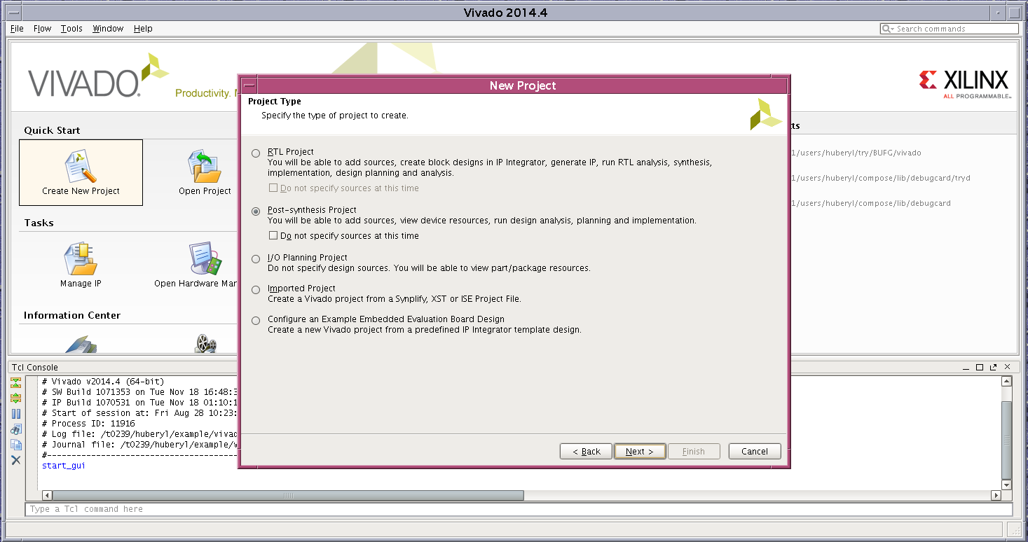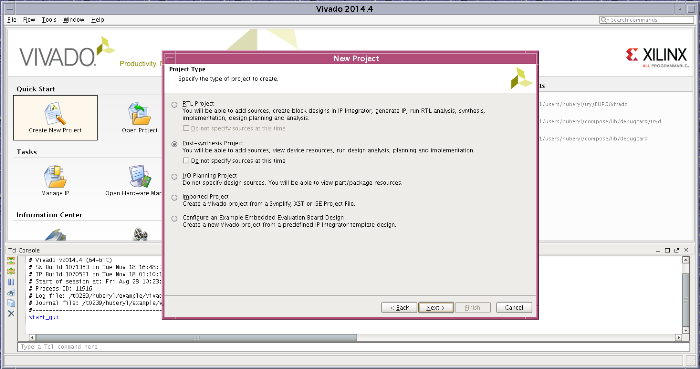 选择Post-synthesis Project。在这里顺便介绍一下其他几个选项,RTL Project就是以rtl为input,也就是说要使用Vivado来synthesis。I/O Planning Project比较特殊,无需rtl,在我看来主要是用于项目前期了解一下器件,以及try一下pin脚分布。
