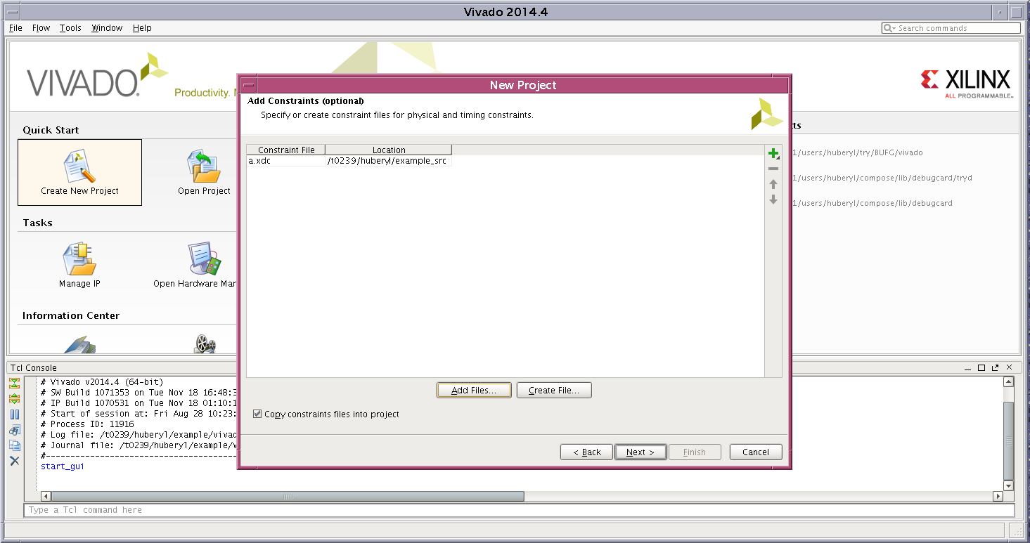 这个时候,在你的目录下,就会自动创建两个文件夹*.cache和*.srcs,其中*就是你的project name。netlist和constraint都存放在了srcs目录下,如果你在vivado中修改了netlist或constraint,都是对srcs下的进行修改。而如果你对源文件进行了修改,是不会自动load的,你需要手动reload一下。