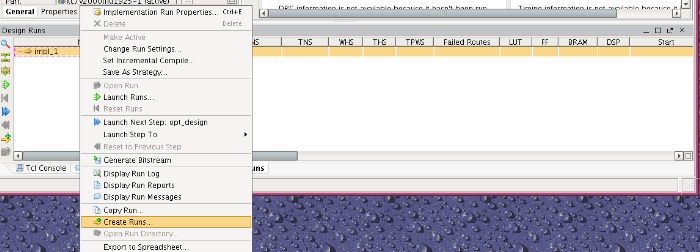在Design runs窗口右键单击,弹出如下窗口,选择Create runs…。