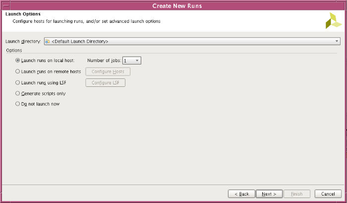 之后界面如下,Vivado可以在一台机器上并行run,也可以串行run,还可以登录远程服务器。点击Next,Create runs就完成了。
