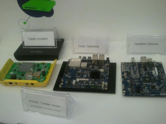 意法半导体在CCNB上展出产品和解决方案很多。其中Alicante网关服务器和Cannes机顶盒客户机通过MoCA2.0/Wi-Fi 802.11ac相连。参观的工程师
