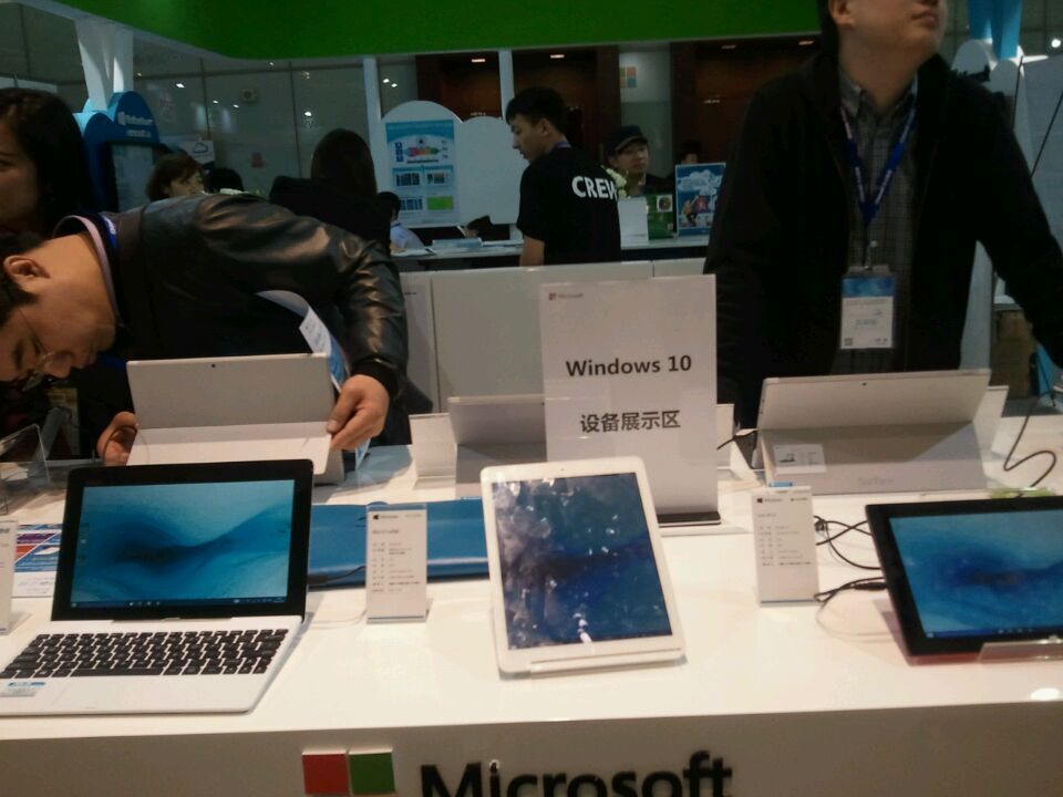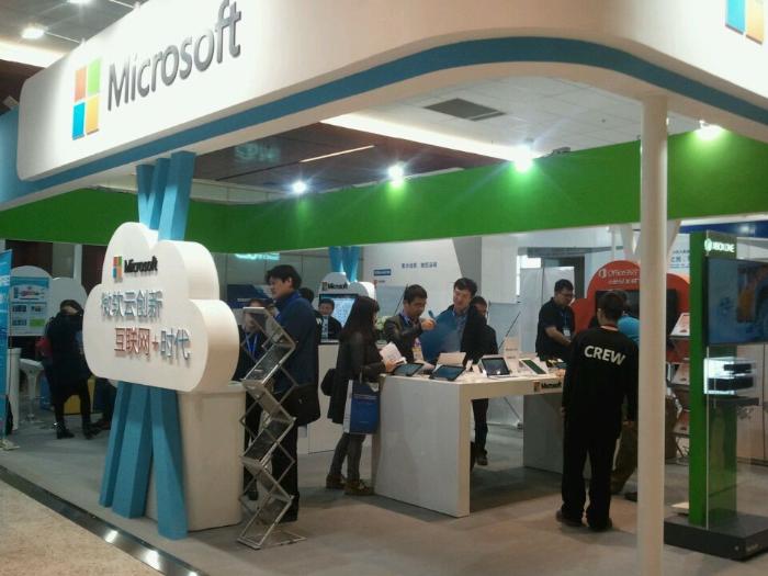 务、软件和开发工具。微软展台展示的超级本全是英特尔的主芯片,展示的诺基亚智能手机和