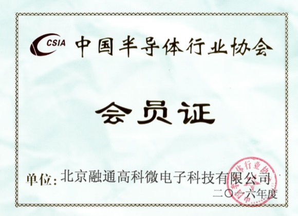 北京融通高科微电子科技有限公司获得中国半导体行业协会会员证书