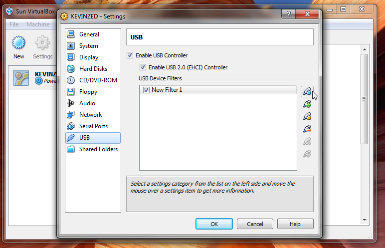 2. 要对虚拟机配置空的USB过滤器,这样,任何USB设备插上去, 虚拟就都能使用。 不配的话, 你的SD读写器插上就不会有反映。