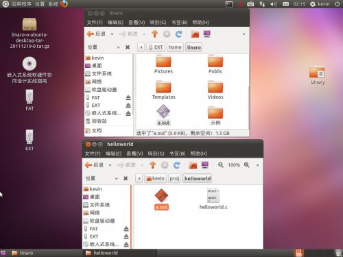 把ZED板上的SD卡拔下来, 插到PC上,将a.out 拷贝到ext文件系统中,比如/home/linaro下面。 然后,再插回到ZED板。 启动。