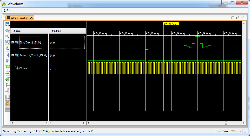 通过将输入信号改为脉冲信号,脉冲宽度为1个周期,此时可观测到此fir滤波器的冲击响应。