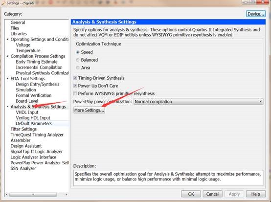 在设置,分析综合(analysis &synthesis setting)选项下,有一个更多设置(more setting),翻看翻看,发现有一个