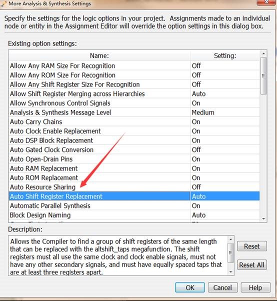 编译器自动添加自然是为了取得更好的编译效果,但是这用自动添加的模块,会让我们有一种无从下手的感觉,时序违规了,还不知道怎么调整,常用的添加寄存器打拍的方式也不管用了,所以,开始想,能不能关掉这个自动添加的模块。于是在设置里找找