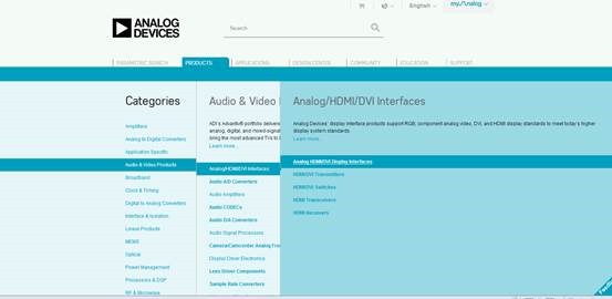 第一反应是去ADI或是TI的官网去找,因为知道这两家大厂在这方面擅长。于是进入ADI官网,anolog device,因为不知道具体型号,只能根据产品列表一步步点下去。