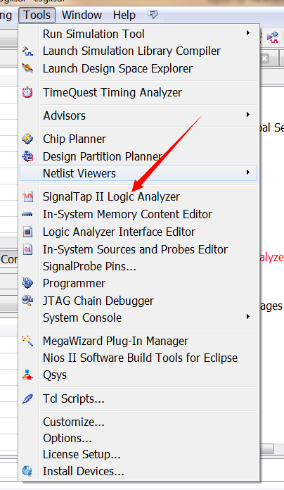 Quartus ii 自带了在线调试分析工具SignalTap ii,可以查看运行中节点信号数据。
