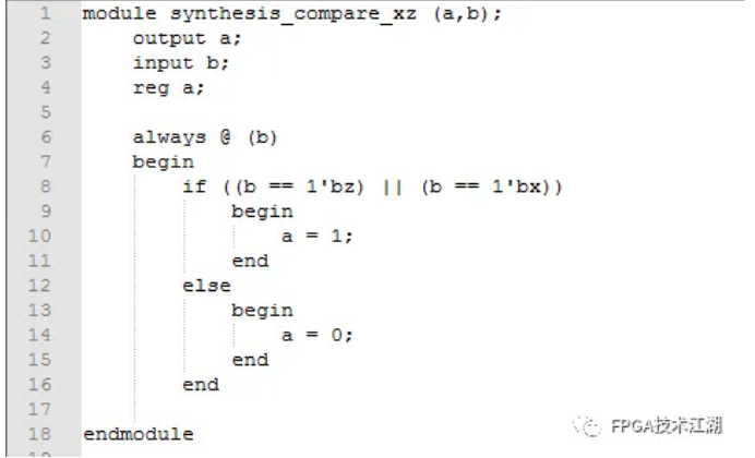 可能会有人喜欢在条件表达式中把数据和X(或Z)进行比较,殊不知这是不可综合的,综合工具同样会忽略。所以要确保信号只有两个状态:0或1。