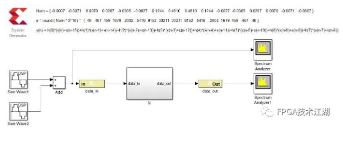 Vivado自带的FIR滤波器IP核已经很好用,这里借FIR滤波器的设计,介绍Simulink图形设计编程方法。Simulink可以使设计更直观,使硬件资源得到更为高效的利用。