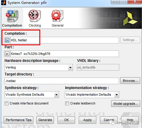 选择此项,用户可直接在simulink下综合出网表和约束文件,打包至.dcp文件中,用户可在vivado下直接加载dcp文件调用模型。
