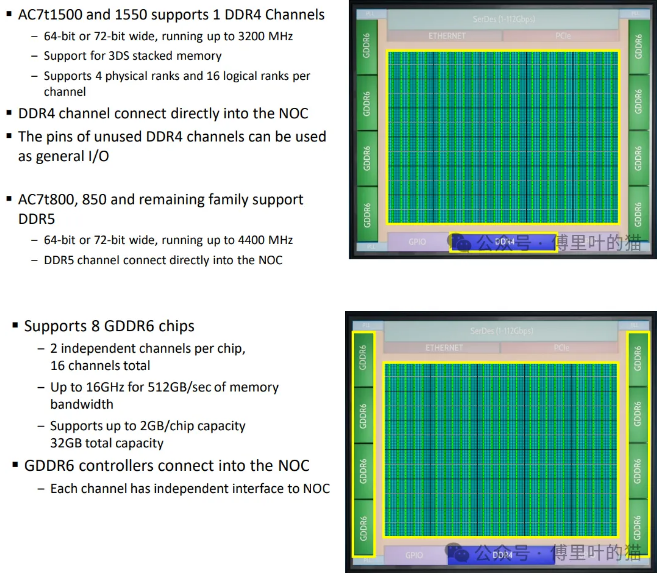 在Speedster7t上,就有300Mb的片上RAM空间,而从Virtex Ultrascale+,也仅仅是最高端的VU57P能与之抗衡,其他FPGA的RAM空间完全比不了。对于DDR Controller,更是支持DDR4/5和GDDR6,在目前的Virtex Ultrascale+的FPGA中,都没有的。